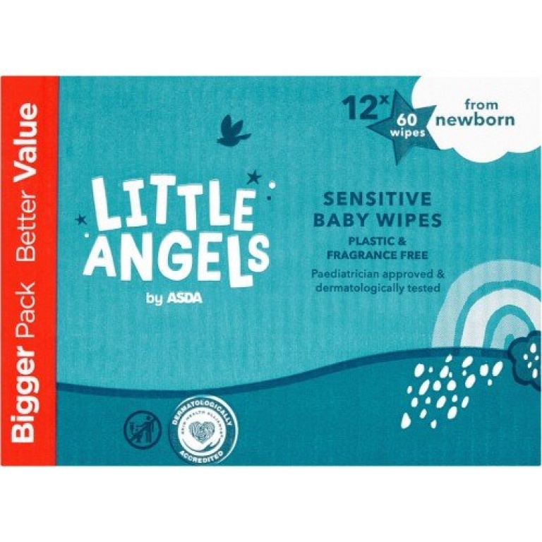 Little Angels Plastic Free, Fragrance Free Sensitive Wipes (12 x 60 Wipes)