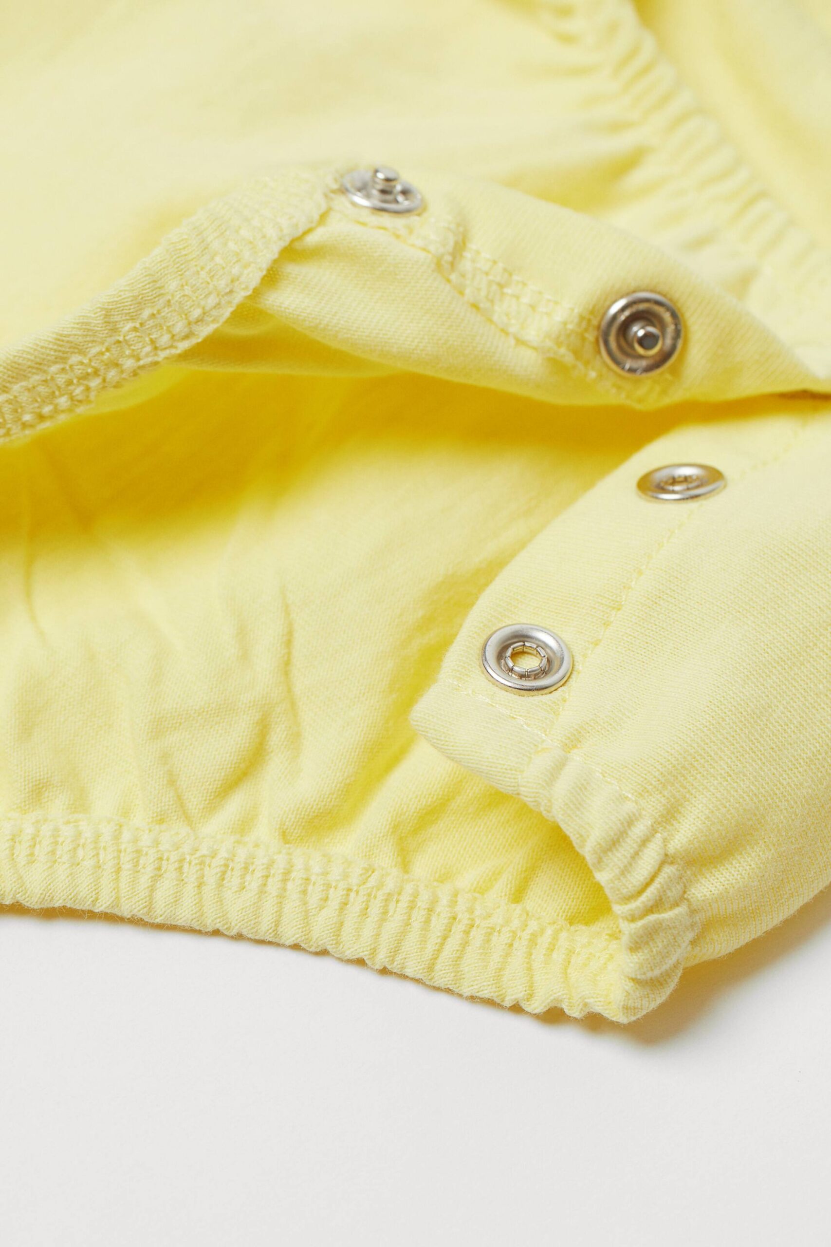 Sleeveless bodysuits in soft cotton jersey, one with an all-over print. Narrow shoulder straps, a lace trim at the top with a decorative bow at the front, and press-studs at the crotch.