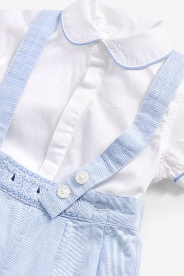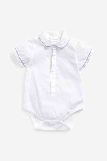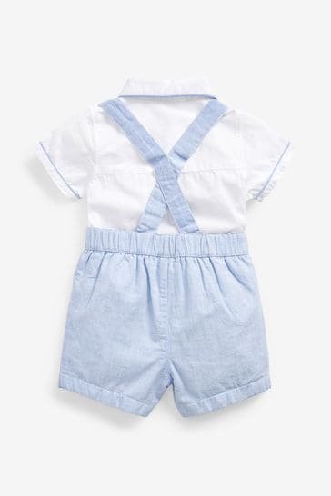 A super cute style, this boys’ shirt and shorts set is designed for a relaxed shape that’s perfect for playtime and beyond. Featuring fully-lined cotton shorts and a stretchy shirt with collar neckline, short sleeves and blue trim details. Complete with nickel-free poppers to protect against irritation.