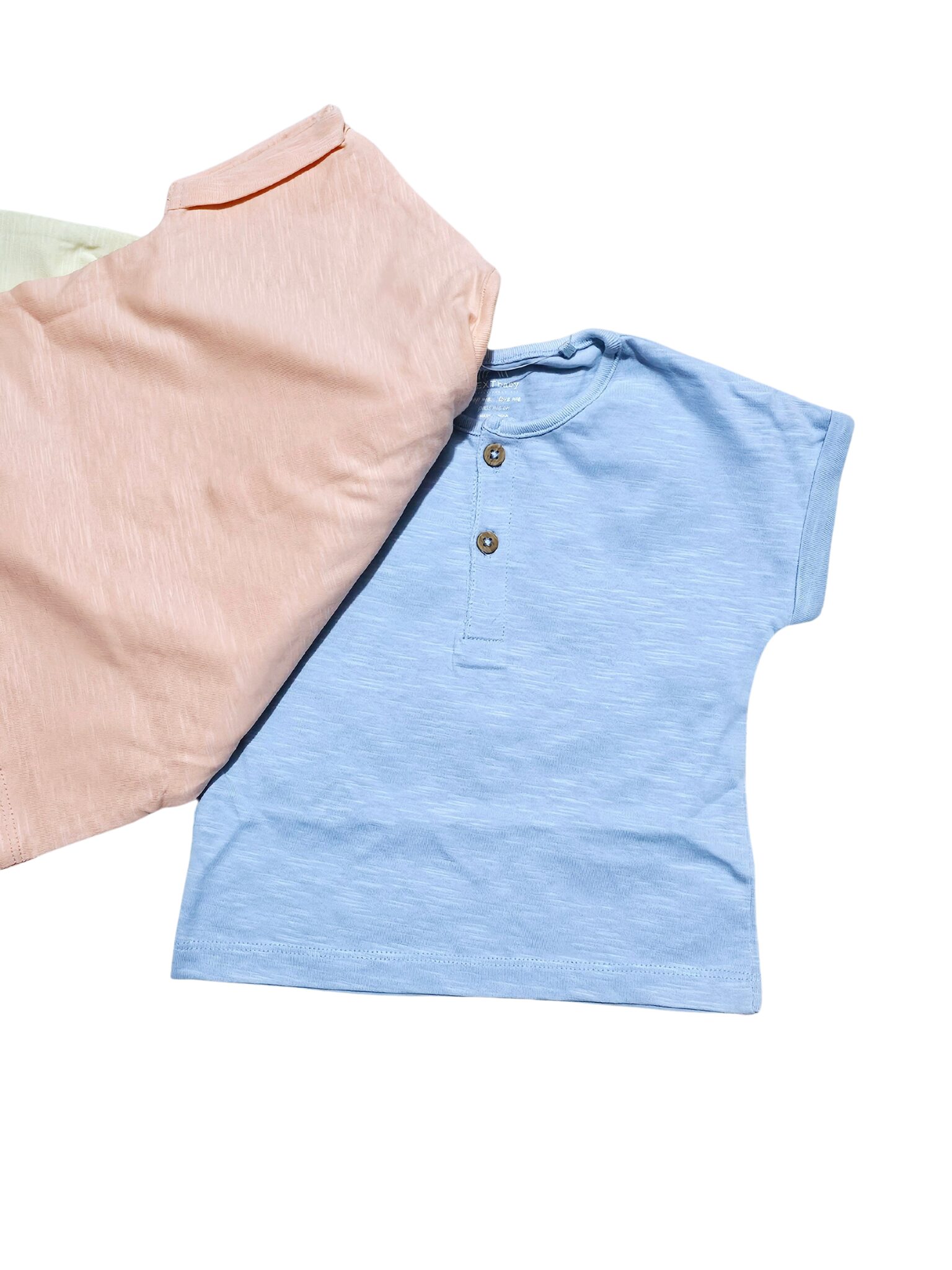 Cotton White Shorts with Light Blue Short-Sleeved Shirt