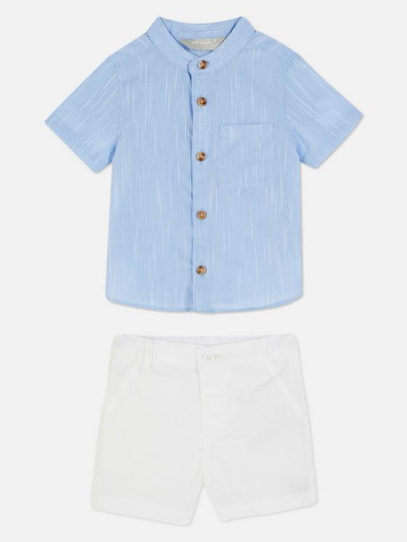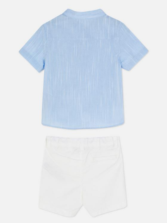 Cotton White Shorts with Light Blue Short-Sleeved Shirt