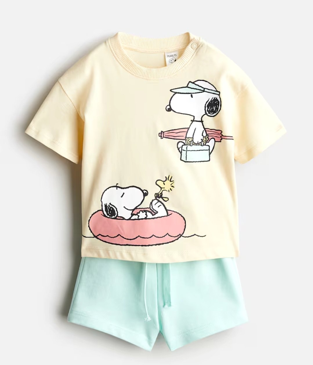 Cotton White Shorts with Light Blue Short-Sleeved Shirt