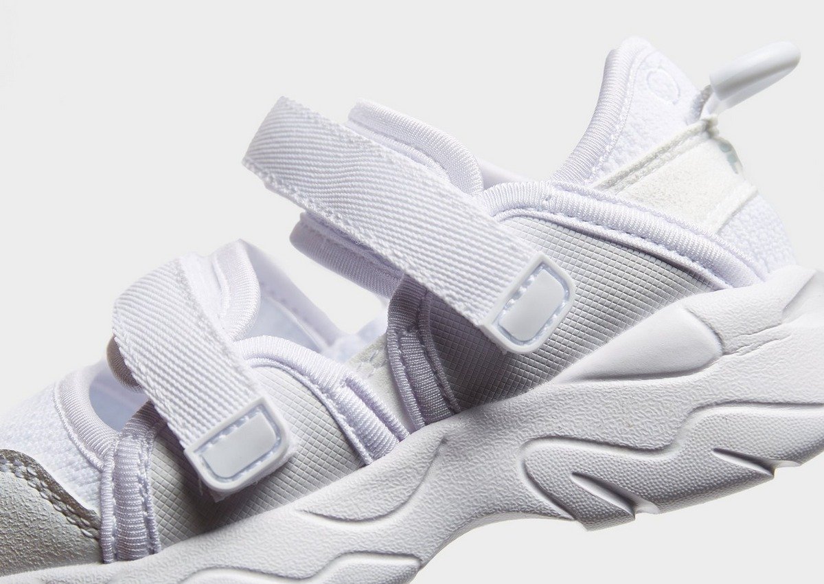 Exclusive to JD, these sandals have a breathable mesh upper with synthetic overlays for support. They come in a fresh White colourway and feature a dual Velcro strap for easy on and off and a custom fit. With a cushioned footbed and midsole, these sandals are finished with grippy tread underfoot, a heel pull and signature Fila branding.