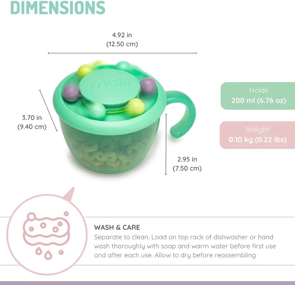 Independent Use – Handle designed for easy grip for little hands that encourages self snacking