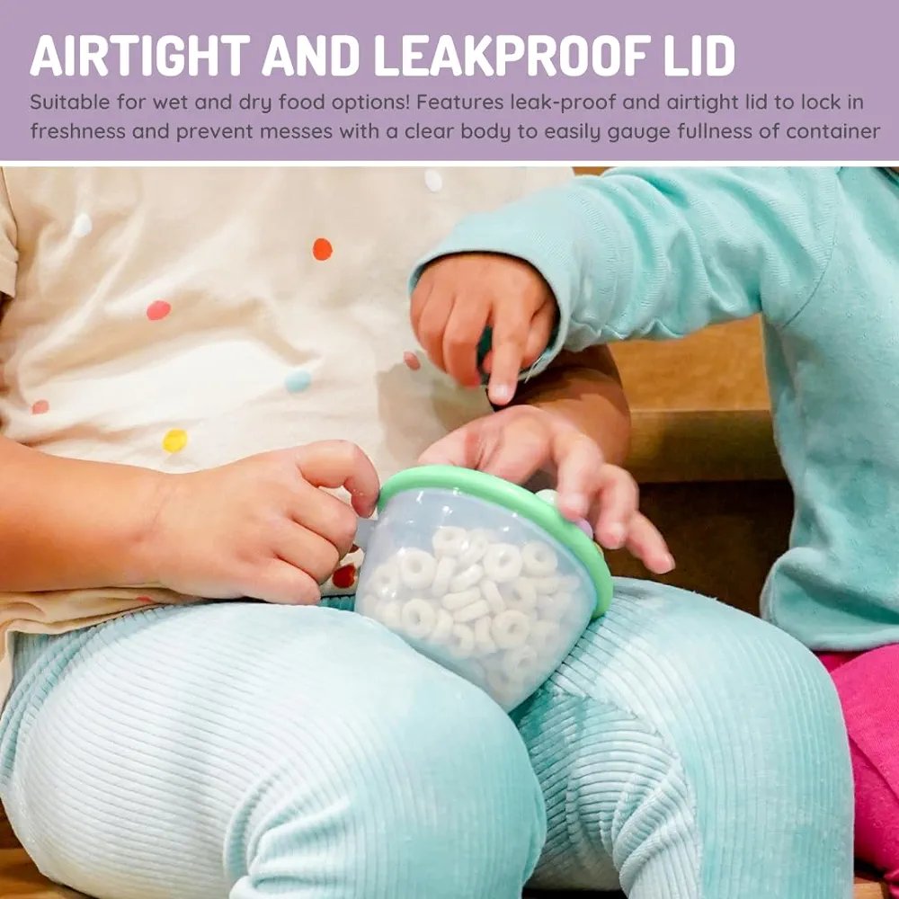No Spills – Soft and flexible finger trap prevents spills and comes with a second lid to keep crumbs contained