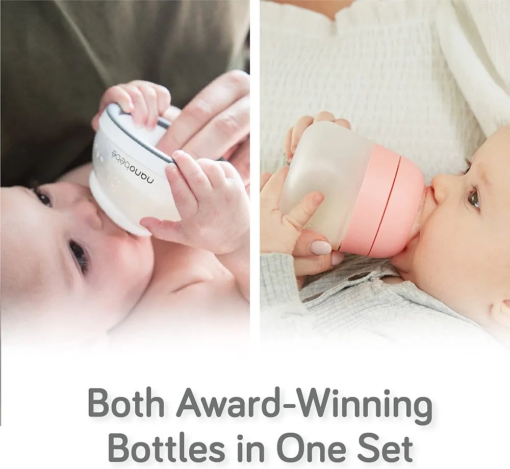 Breast Milk or Formula, We’ve Got You Covered: Both award-winning Nanobébé baby bottles (newly redesigned Breastmilk and Flexy Silicone) in one set feature a natural mom-like feel, nutrient protection, smooth transitions between breast and bottle, and are easy to clean.