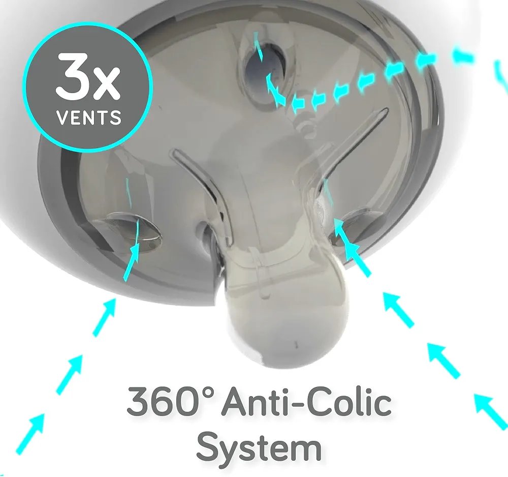 Anti-Colic: Features the first and only 360-degree, triple-vented nipples that reduce colic and help baby stay latched.