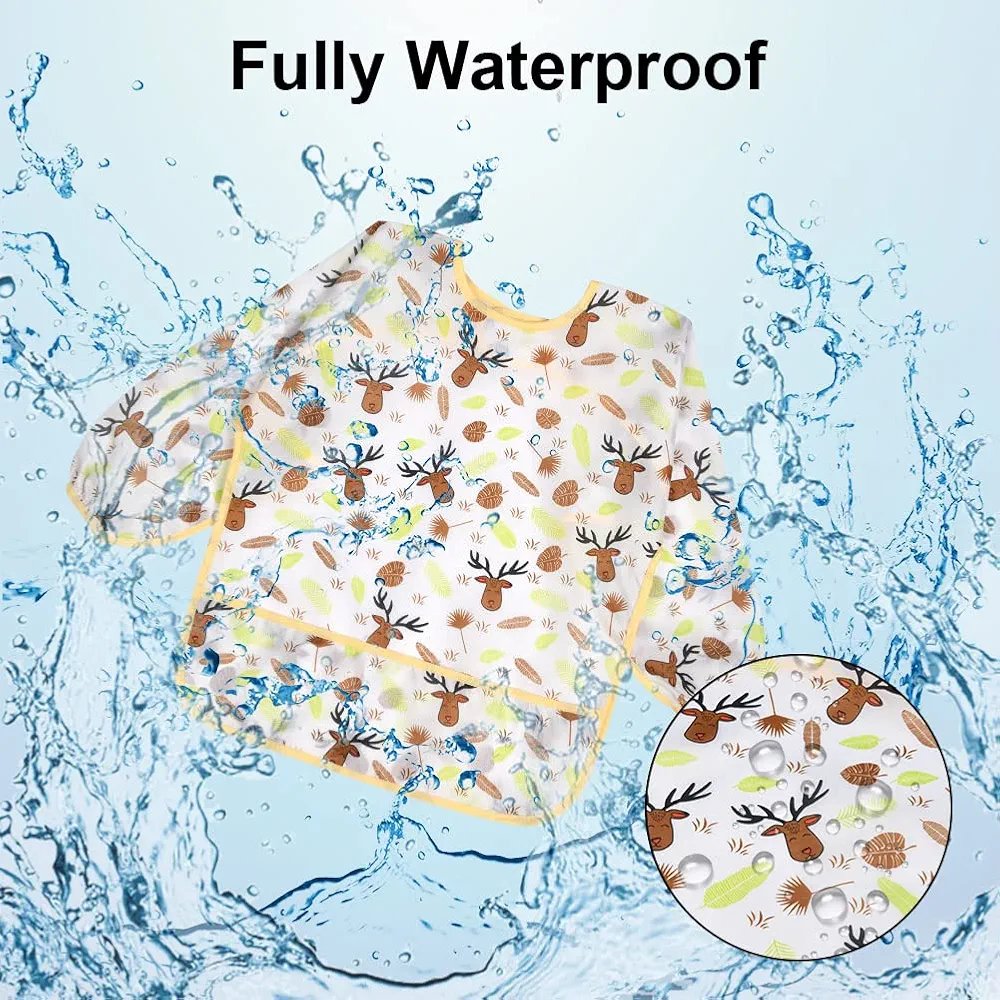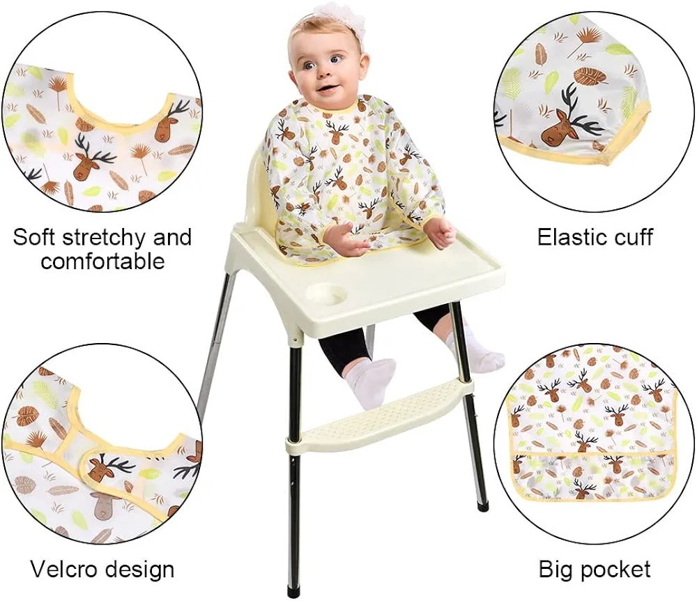 - 【Easy to Clean】The long-sleeved bibs can cover all clothes, guarantee that the clothes will not be stained, gently remove stains with wet paper towels or towels, or wash with water. Machine wash or hand wash, hang to dry after washing.