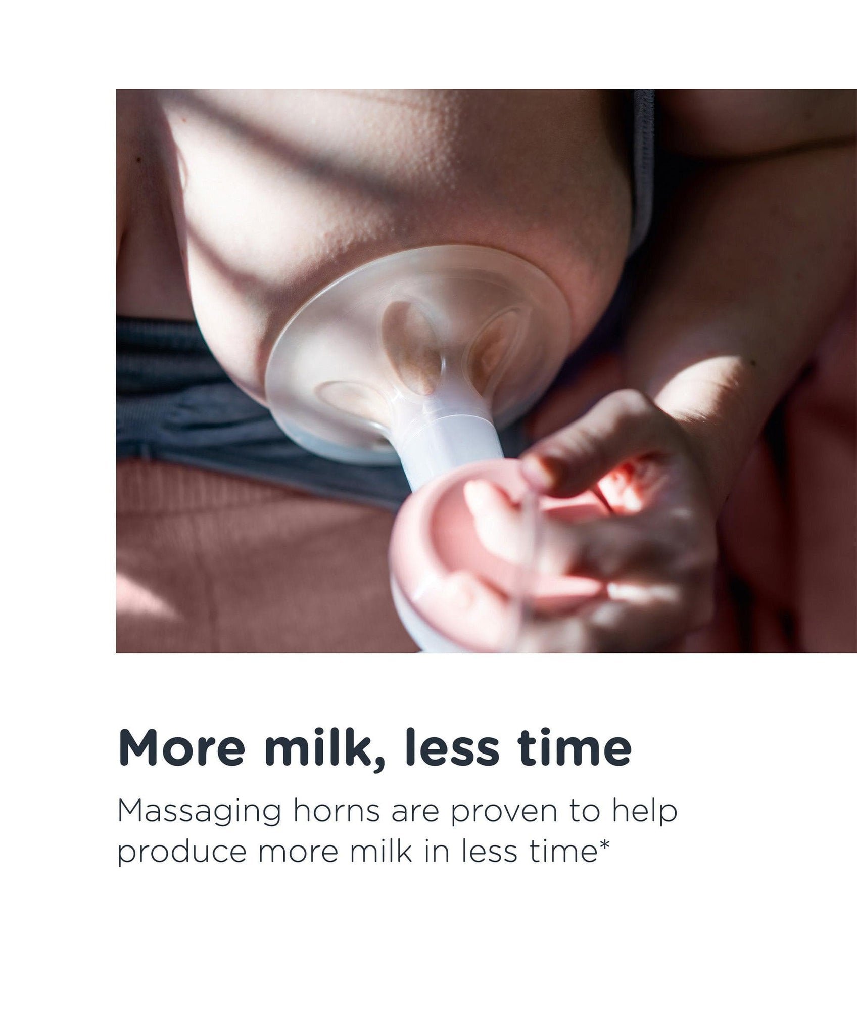 More milk in less time: The soft, silicone cups feature massaging petals that work to stimulate your breasts so you can express more milk in less time.