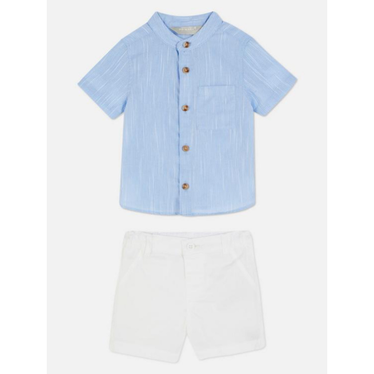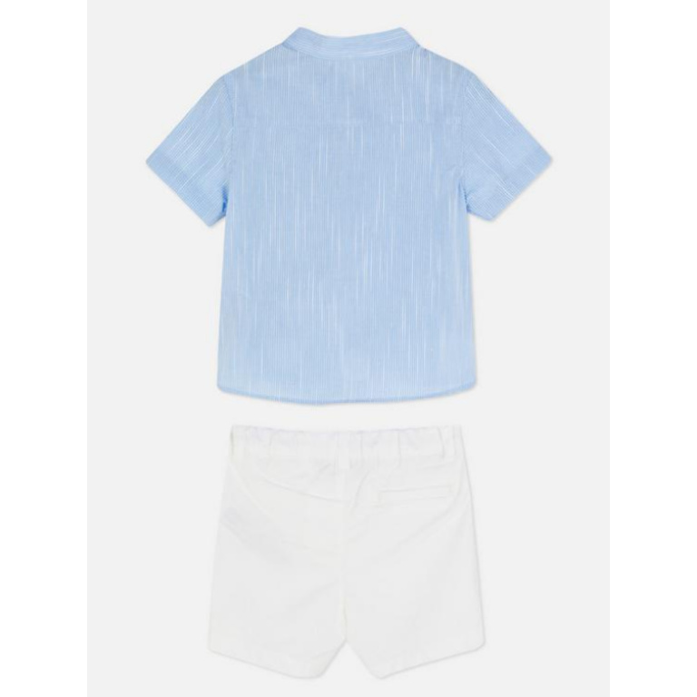 Cotton White Shorts with Light Blue Short-Sleeved Shirt