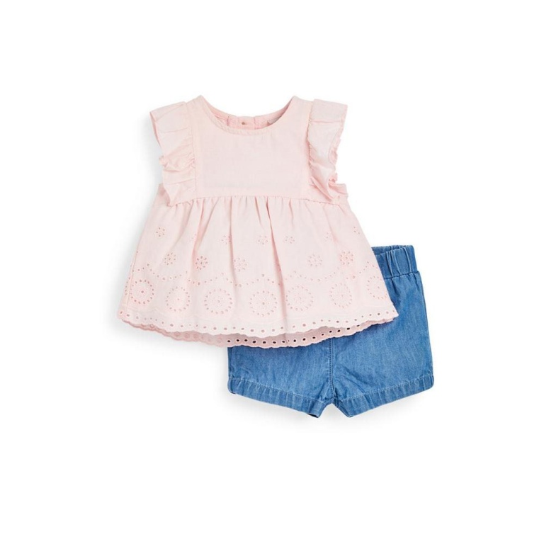 Girls Pink Blouse and Jeans Shorts