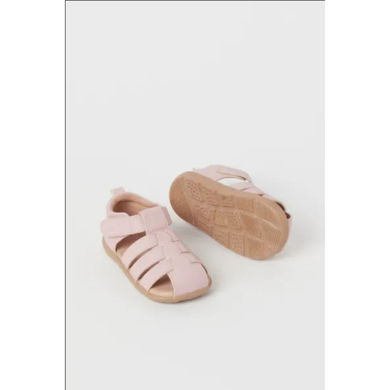 Sandals in imitation leather with a padded edge, loop at the back and a hook and loop tab at the front to make them easy to put on and take off. Sturdy, patterned soles with a good grip. Height of soles 1.2 cm.